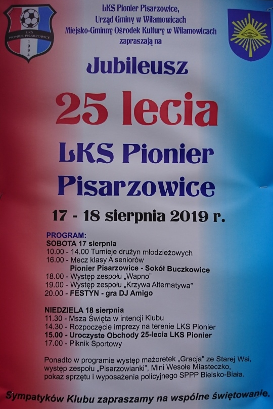 Zapraszamy na 25-lecie LKS Pionier Pisarzowice
