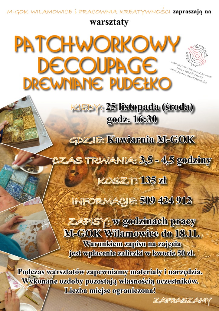 Zapraszamy na warsztaty!!! Patchworkowy decoupage - drewniane pudełko