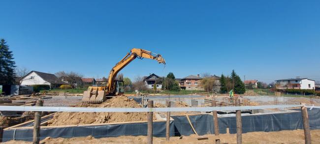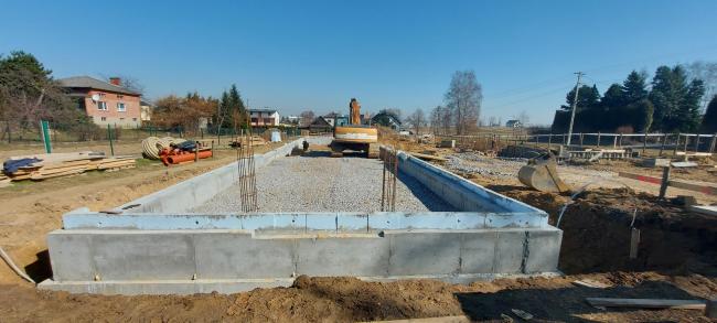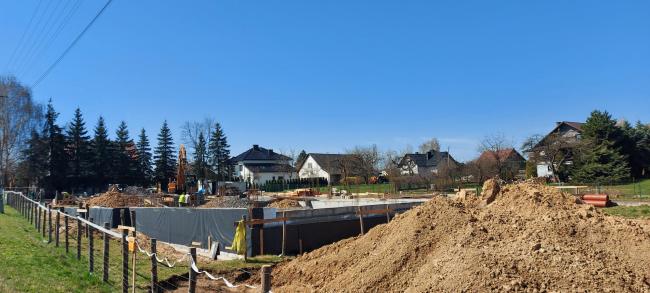 W miesiącach lutym i marcu wykonywane są dalsze prace ziemne, przygotowywanie terenu pod instalacje zewnętrzne (woda, gaz, kanalizacja sanitarna i kanalizacja deszczowa) wykonywanie fundamentów oraz wstępne utwardzenie parkingu.