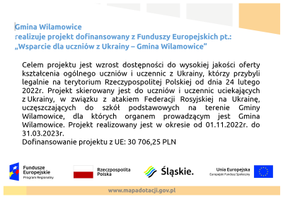 Gmina Wilamowice realizuje projekt pt. „Wsparcie dla uczniów z Ukrainy – Gmina Wilamowice”