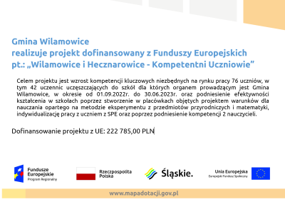 Gmina Wilamowice realizuje projekt pn.: „Wilamowice i Hecznarowice - Kompetentni Uczniowie”