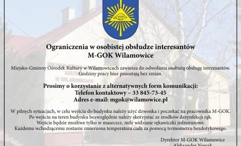 Ograniczenia w osobistej obsłudze interesantów M-GOK Wilamowice