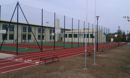 Opis zadania: Budowa boiska wielofunkcyjnego z nawierzchnią poliuretanową o wymiarach 22x44 m ( wraz z wyposażeniem i ogrodzeniem ), w ramach którego wyodrębnione: boisko do piłki ręcznej o wymiarach 40x20, 2 boiska do koszykówki o wymiarach 20x15, 2 boiska do siatkówki o wymiarach 9x15; budowa bieżni, budowa zeskoczni skoku wzwyż, budowa zeskoczni skoku w dal, budowa rzutni do pchnięcia kulą, odwodnienie terenu boiska, oświetlenie terenu boiska, zagospodarowanie terenu ( chodniki i place, droga wewnętrzna, brama wjazdowa ).